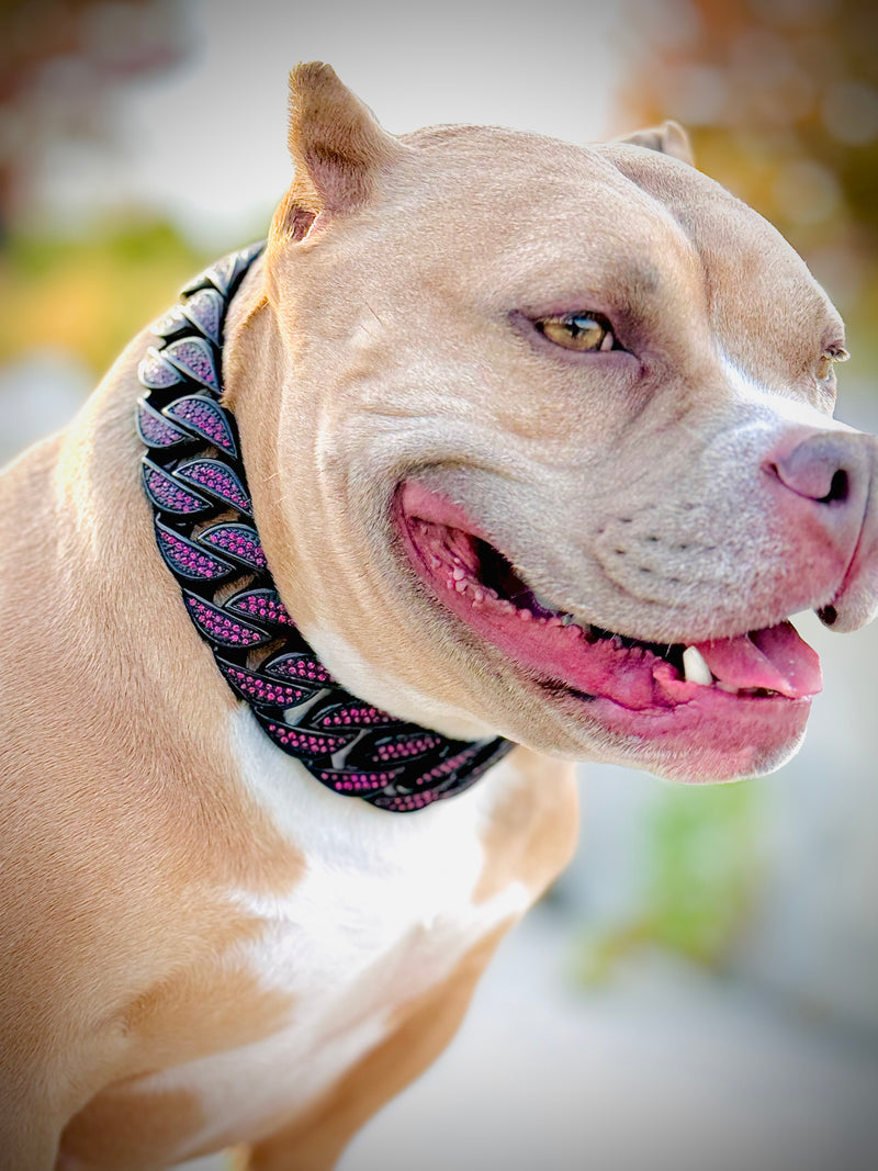 Introducing the NEW Black and Fuchsia Pink collar – a bold, luxury statement piece featuring deep pink stones set in sleek black, cut to shine bright from every angle.